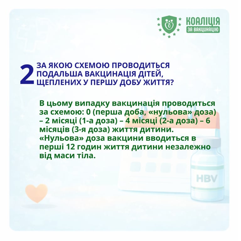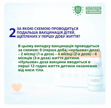 Питання: За якою схемою проводиться подальша вакцинація дітей, що отримали дозу вакцини проти гепатиту В в першу добу життя?