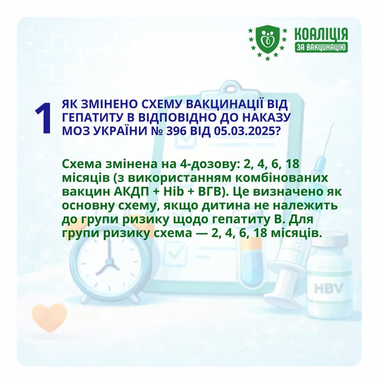 Питання: Як змінено схему вакцинації від гепатиту B відповідно до наказу МОЗ України № 396 від 05.03.2025?