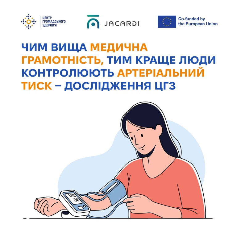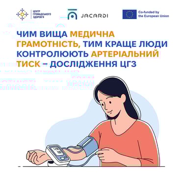 З метою оцінки рівня медичної грамотності українців щодо активного самоконтролю артеріальної гіпертензії, Центр громадського здоров'я провів дослідження серед пацієнтів віком 30-60 років з діагностованою АГ на Львівщині та Хмельниччині. Пілотне дослідження реалізували вперше в Україні — в рамках проєкту JACARDI.