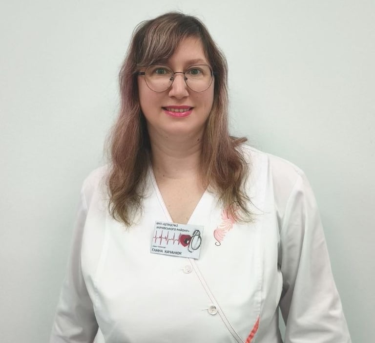 КАЧАНЮК ГАННА ІГОРІВНА - сімейний лікар амбулаторії загальної практики сімейної медицини селища Пісочин філія "Мобіль", досвідчений фахівець медичної справи, яка готова подбати про Ваше здоров’я та здоров’я Вашої родини.