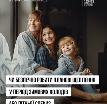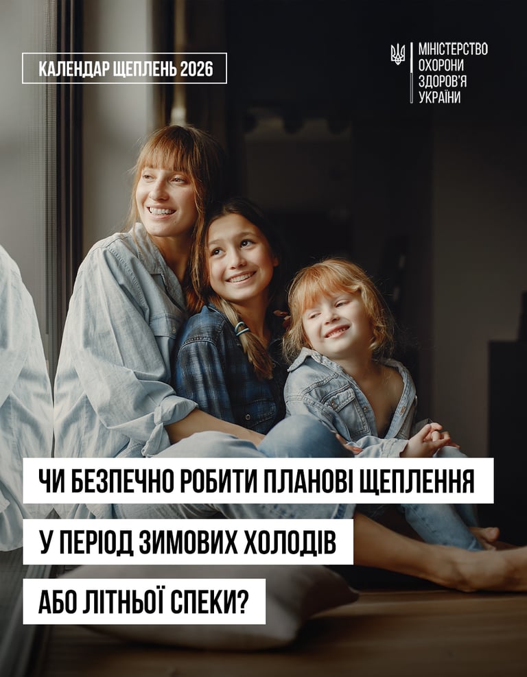 Національний календар щеплень розроблений так, щоб захистити вас або вашу дитину завчасно — до контакту із інфекцією. Колективний імунітет базується на тому, що діти різного віку вчасно щеплюються і захищаються від інфекційних захворювань. Погода — не привід переносити вакцинацію і тим самим наражатися на небезпеку.