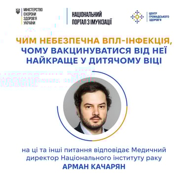 Чим небезпечна ВПЛ-інфекція, чому вакцинуватися найкраще у дитячому віці — на ці та інші ключові питання про ВПЛ та щеплення від цієї інфекції відповідає Медичний директор Національний інститут раку Arman Kacharian .