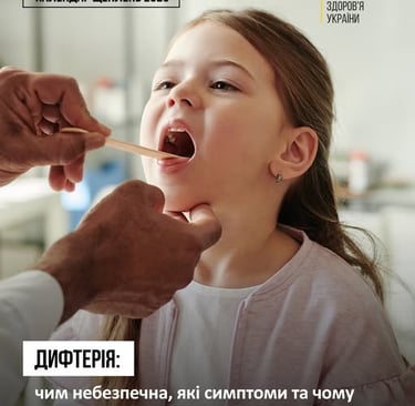 Дифтерія — це небезпечна бактеріальна інфекція, що уражає дихальні шляхи, горло та шкіру, спричинена паличкою Corynebacterium diphtheriae, яка продукує дуже сильний токсин. Збудник дифтерії передається повітряно-крапельним шляхом. Небезпечним ускладненням дифтерії можна запобігти за допомогою вакцинації.