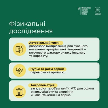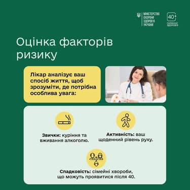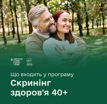 Саме з цією метою і створено програму Скринінг здоров’я 40+, що базується на засадах доказової медицини та найкращих європейських практиках. Вона дає можливість безоплатно перевірити стан організму, оцінити індивідуальні ризики та спільно з лікарем визначити план дій для збереження вашого здоров'я.