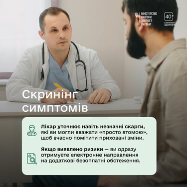 Детальніше про Скринінг здоров’я 40+: screening.moz.gov.ua