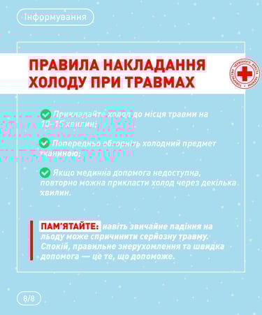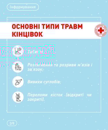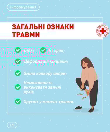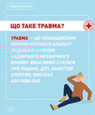 Слизькі дороги — часта причина падінь і ймовірності травм. Читайте, як розпізнати травму та надати першу допомогу.