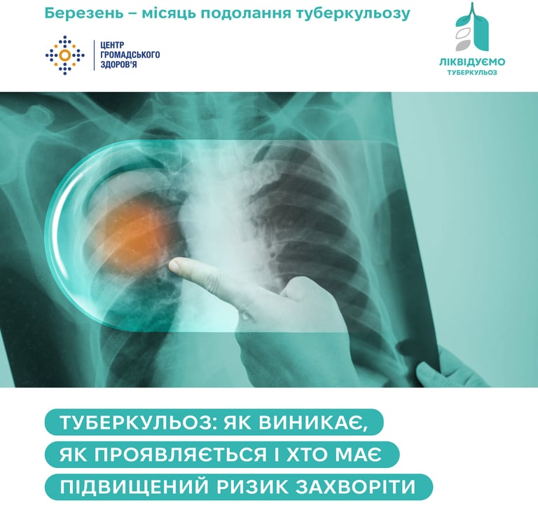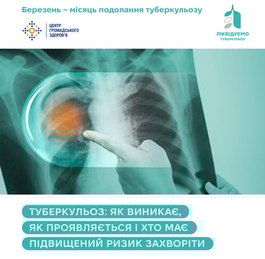 У межах Місяця подолання туберкульозу розповідаємо: як розвивається захворювання, які симптоми можуть свідчити про ТБ, хто входить до груп ризику і чому важливо не зволікати зі зверненням до лікаря.