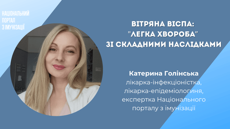 Вітряну віспу традиційно вважають “легкою хворобою”. Ба більше: радять перехворіти на неї в дитинстві. Але чи варто дослухатися до таких порад? Чим насправді небезпечна “вітрянка”? Та чи варто проти неї вакцинуватися? Про реальні ризики вітряної віспи розповідає експертка Національного порталу з імунізації Катерина Голінська – лікарка-інфекціоністка, епідеміологиня, тренерка Академії Сімейної Медицини України.