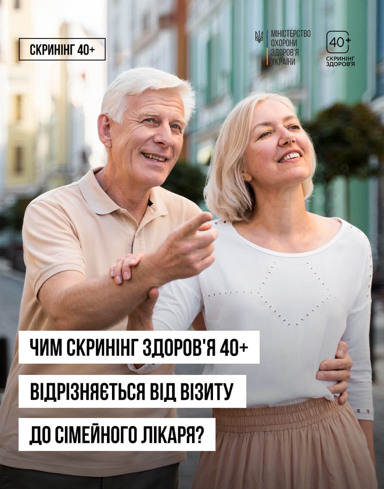 Мета національної програми «Скринінг здоров’я 40+» — допомогти людям віком від 40 років вчасно виявляти фактори ризику та хронічні захворювання, які часто тривалий час протікають без симптомів. Насамперед ідеться про серцево-судинні захворювання та цукровий діабет 2 типу.