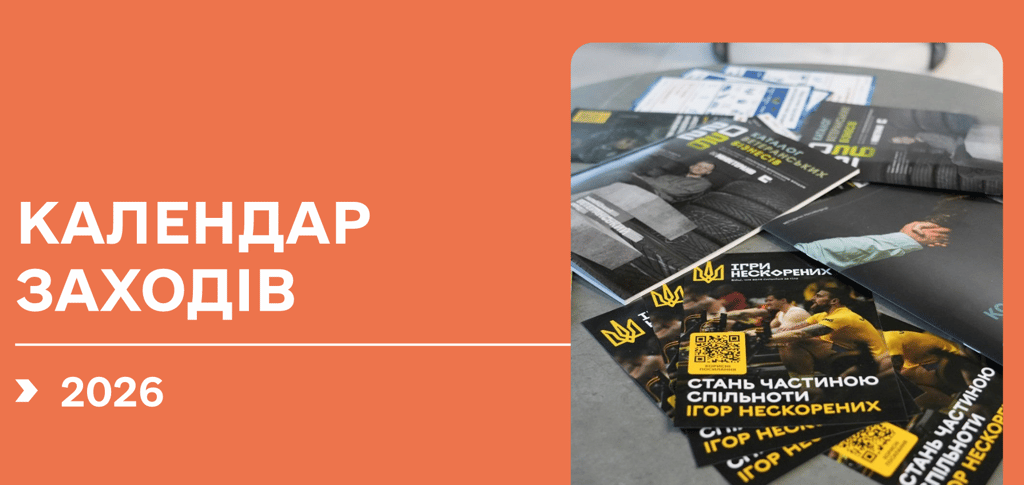 Пропонуємо до Вашої уваги детальну інформацію щодо спортивних заходів зі спорту ветеранів війни, які включені до Календарного плану спортивних заходів Міністерства у справах ветеранів України, затвердженого наказом Міністерства молоді та спорту України від 26.12.2025 № 8071 «Про затвердження Єдиного календарного плану фізкультурно-оздоровчих, спортивних заходів та спортивних змагань України на 2026 рік».